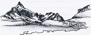 | © arête des Sept Laux, depuis le Pic des Cabottes (2732 m) à gauche jusqu'à la Crête des Oudis (2266 m) à droite | ||
