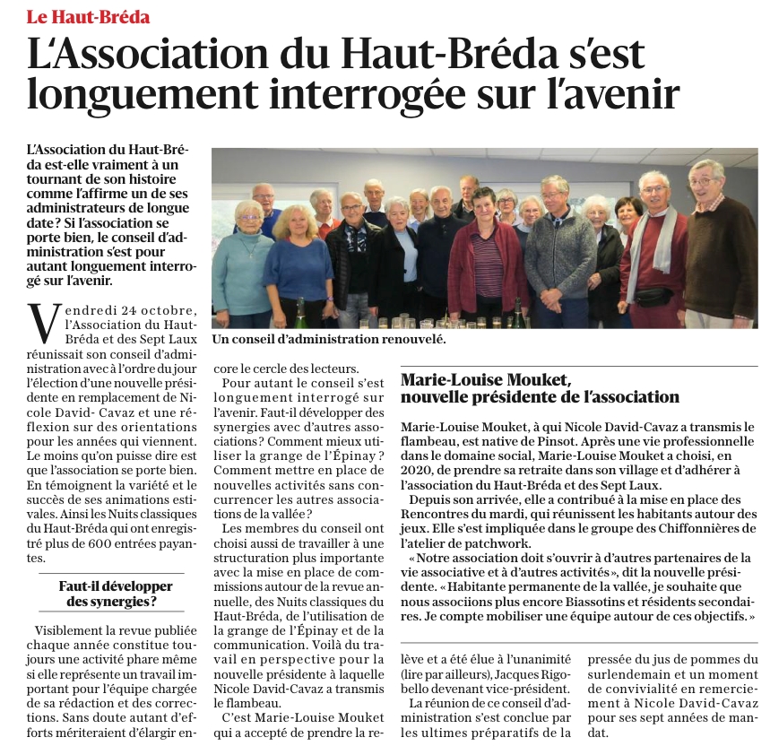 | " L'Association du Haut Bréda s'est longuement interrogée sur l'avenir " - Le Dauphiné Libéré du 28.10.2025 | ||